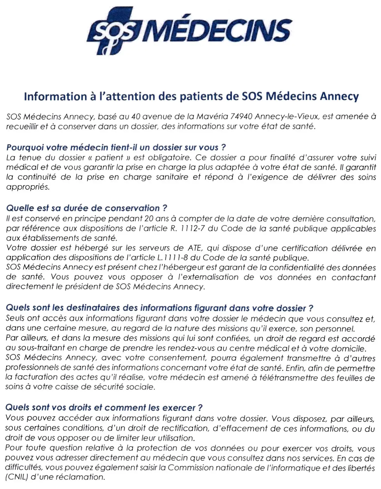 Si vous consultez un de nos médecins, c’est la Maison médicale de garde SOS Médecins Annecy qui créera un dossier.